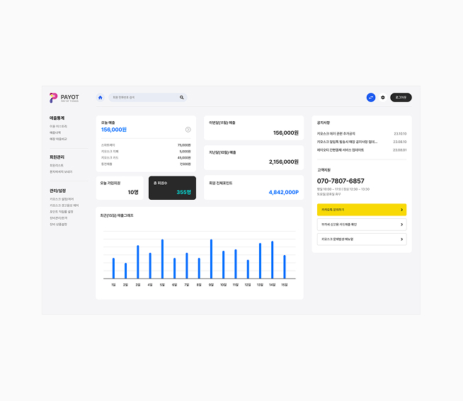 매장을 관리하기 위한 스마트한 기능을 담고 있습니다. 클레임처리를 위한 원격장비제어 기능과, 카카오톡 알림, 회원포인트 지급/차감 등 매장운영에 필요한 다양한 기능을 만나보세요